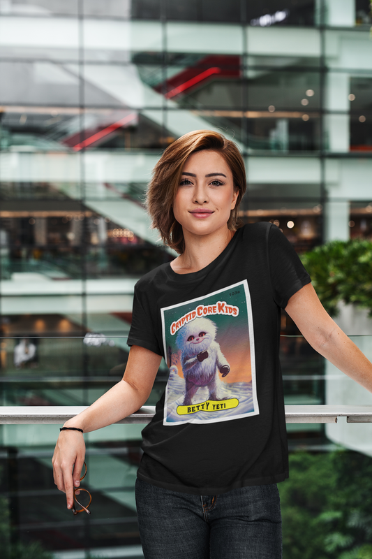 Betty Yeti Trading Card T-Shirt | Abominable Snowman Teeshirt | Cryptid Core Kids Tee Shirt | Gift Cryptozoology | GPK Parody Garbage Pail