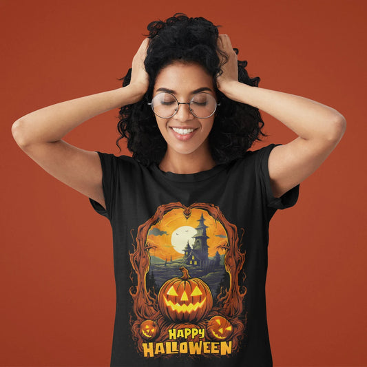 Happy Halloween Pumpkin Shirt | Jack-o-lantern teeshirt | Spooky t-shirt | Horror Clothing | Fall style | Haunted House Fashion