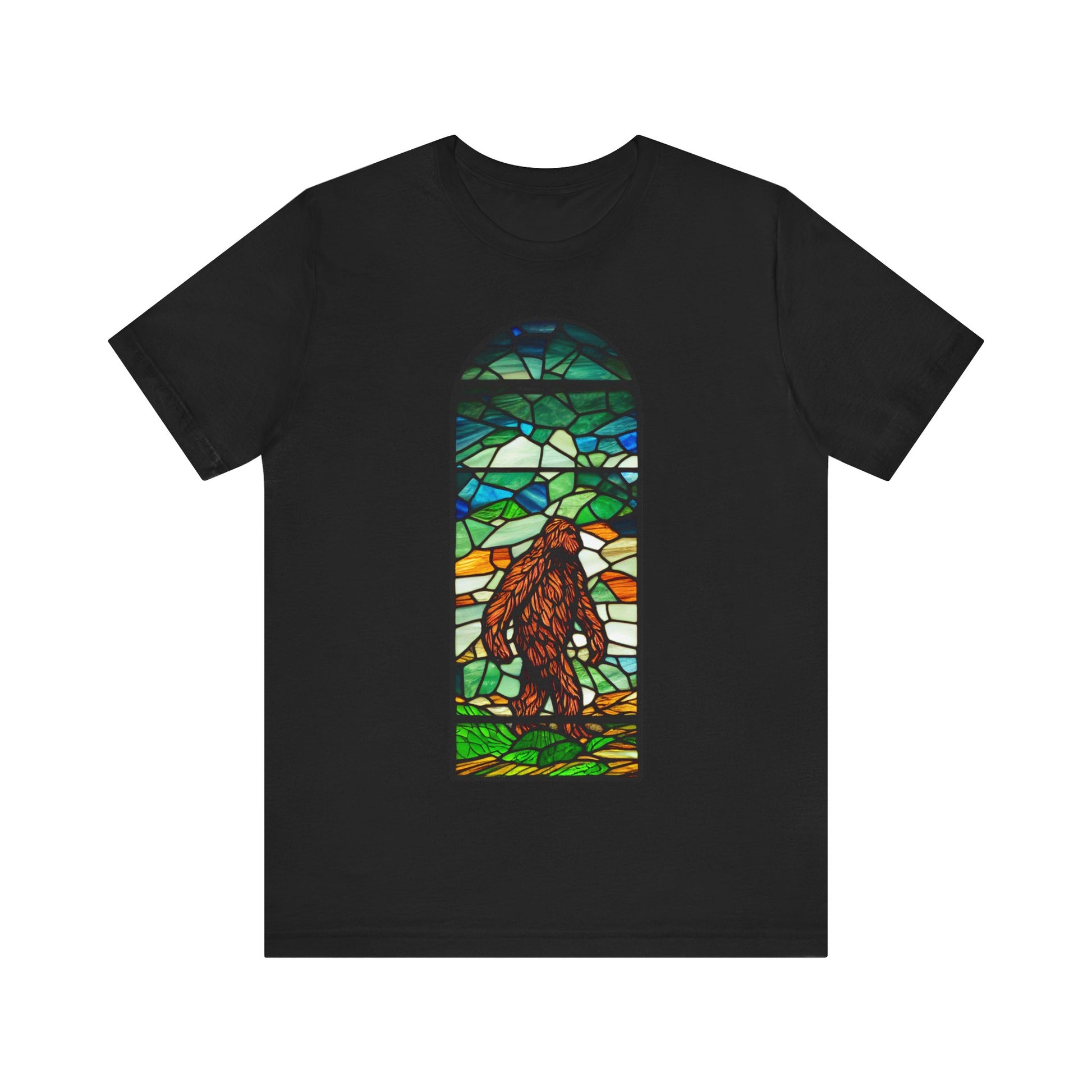 Bigfoot Stained Glass T-Shirt | Cryptid Teeshirt | Sasquatch Monster Tee | Horror Gift | Cryptozoology | Cryptidcore