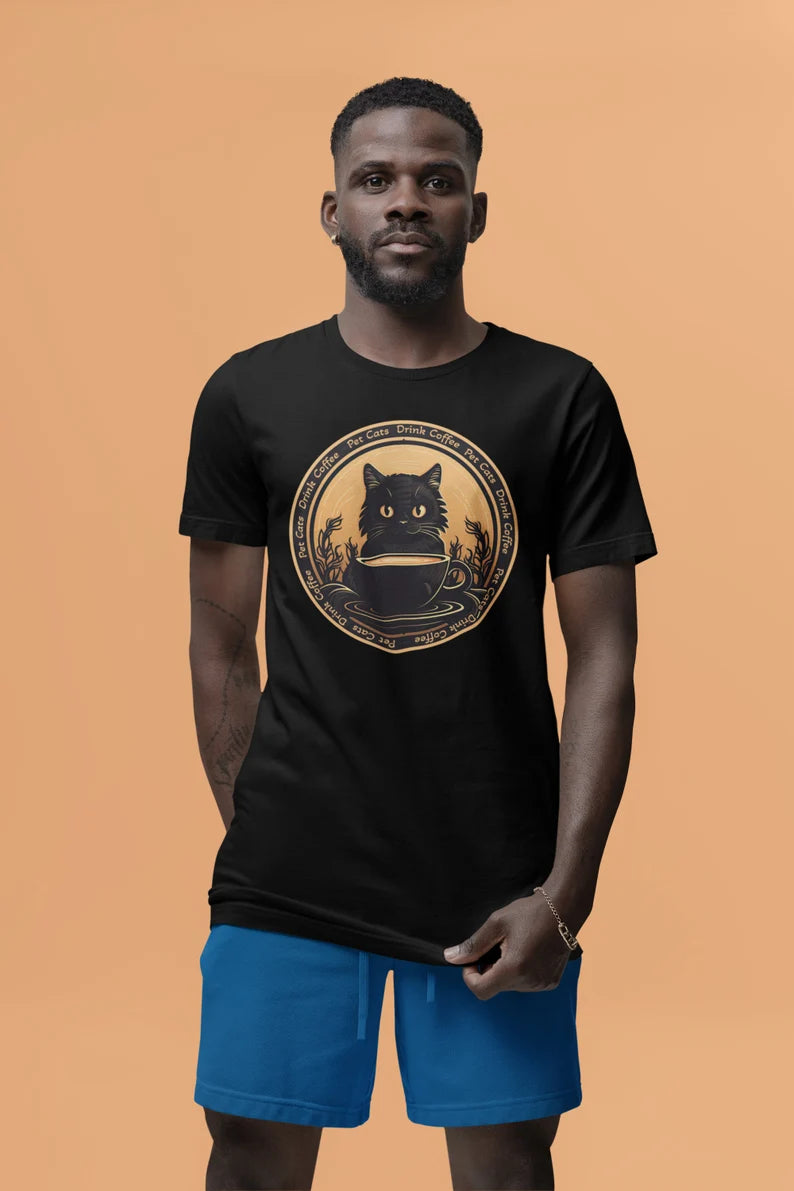 Pet Cats Drink Coffee Shirt | Cat Lover teeshirt | Caffeine t-shirt | Kitty Clothing