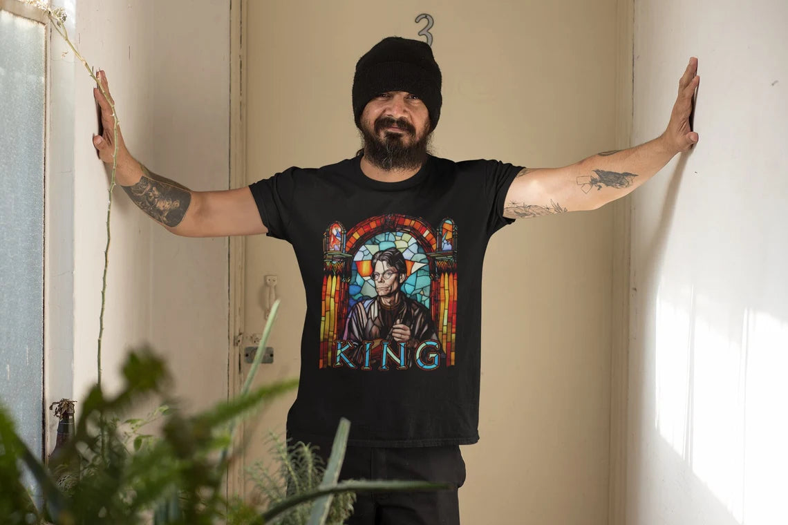 Stephen King Stained Glass T-Shirt | The King Teeshirt | Horror Tee Shirt | Author Writer Reader Gift Stained Glass Window